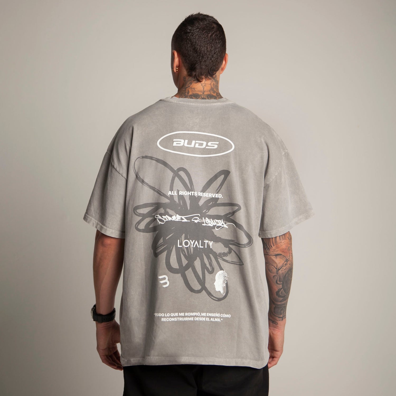 Camiseta Oversize Hombre Acid Wash Gris Alto Gramaje 250G