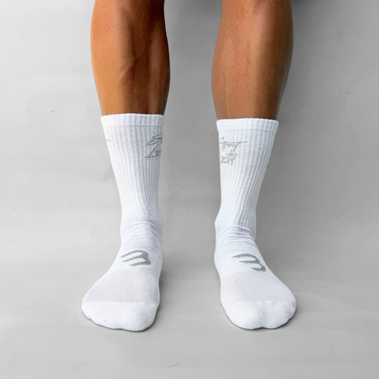 Medias Canilleras Blanca Cursiva Gris Buds
