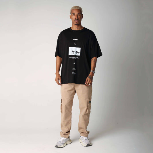 Camiseta Oversize Hombre Diseño Negra Buds Caballos