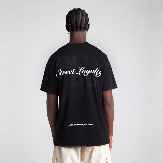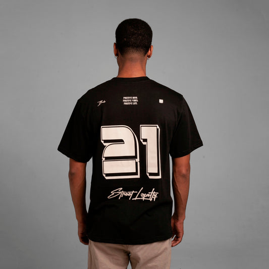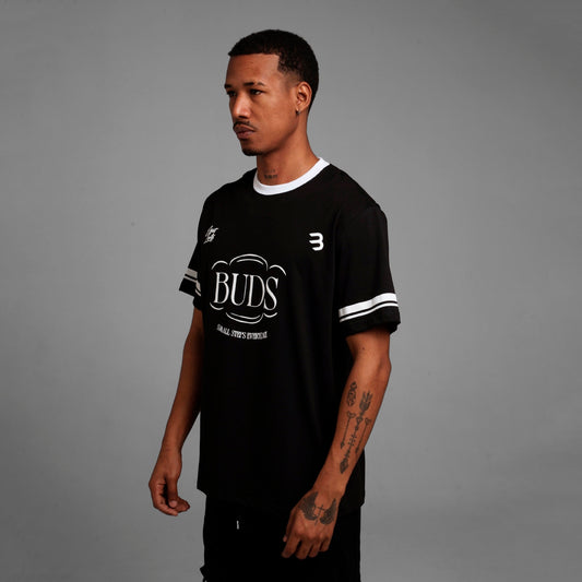 Camiseta Regular Fit Negra Buds Cuello Blanco