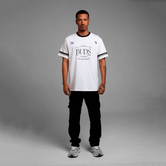 Camiseta Regular Fit Blanca Buds Cuello Negro