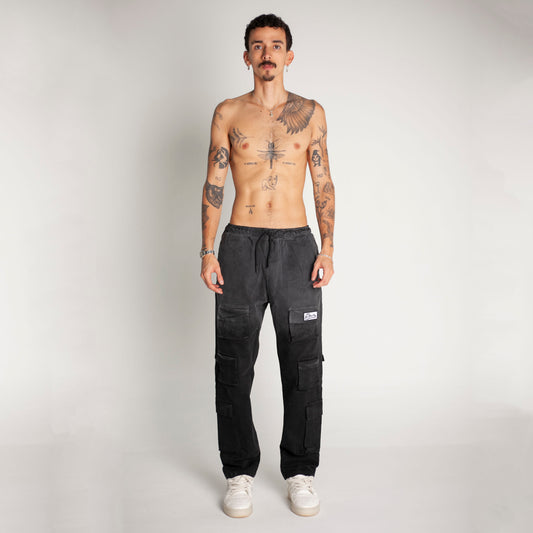 Pantalón Cargo Bota Recta Negro Toalla Buds