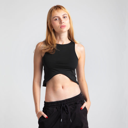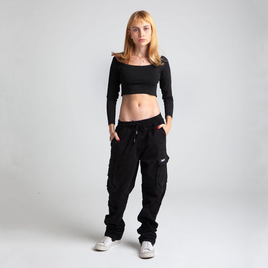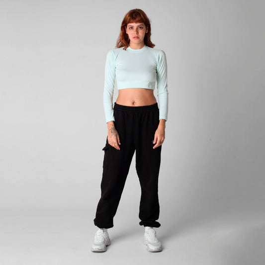 Crop Top Mujer Manga Larga Rib Negro Buds