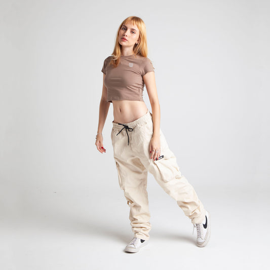 Crop Top Mujer Manga Larga Rib Beige Buds