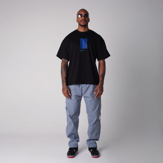 Camiseta Semi Oversize Hombre Negra Alto Gramaje 250G