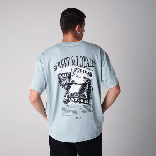 Camiseta Semi Oversize Hombre Azul Alto Gramaje 250G
