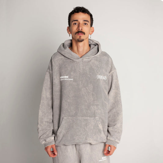 Buzo Hoodie Gris Acid Wash Tela Alto Gramaje 400G