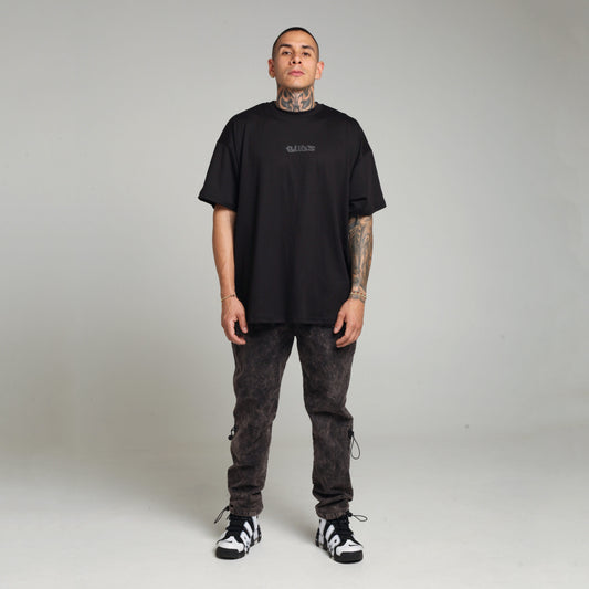 Camiseta Oversize Hombre Alto Gramaje 250G Negra Rubber