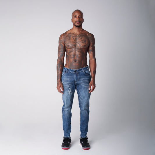 Jean Denim Bota Recta Hombre Azul Desgastes Buds