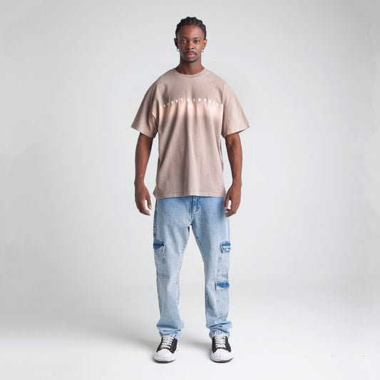 Camiseta Oversize Hombre Café y Línea Beige Alto Gramaje 250G
