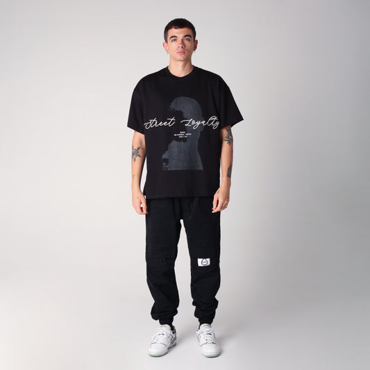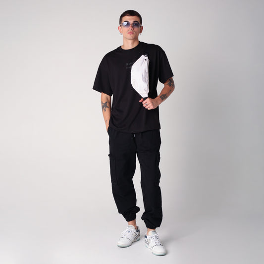 Camiseta Semi Oversize Hombre Negra Alto Gramaje 250G