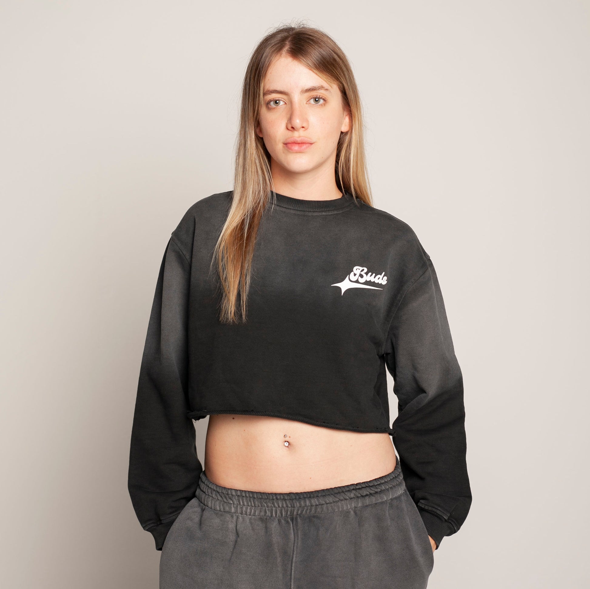 Buzo Crop Top Crewneck Gris Degradé Tela Alto Gramaje 400G