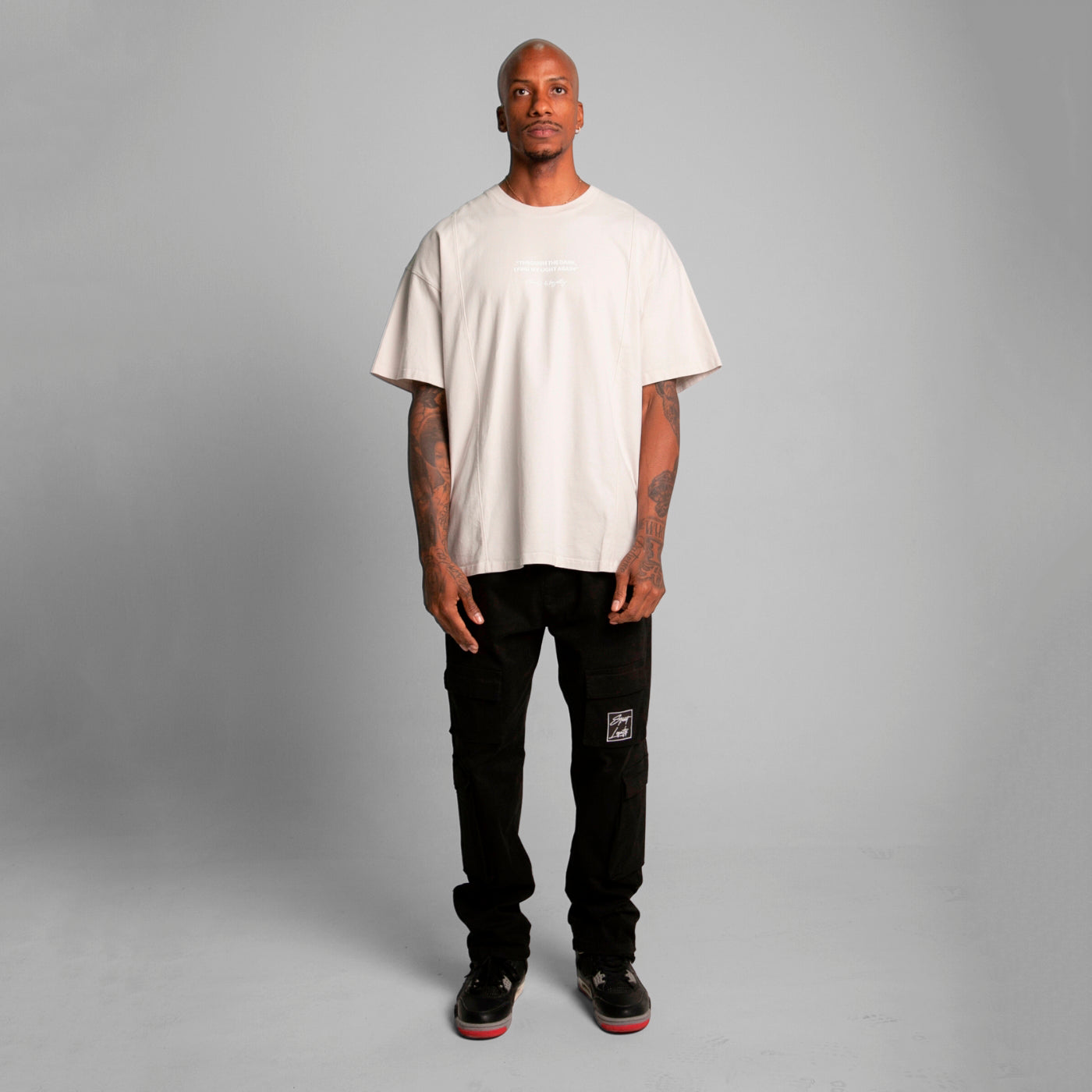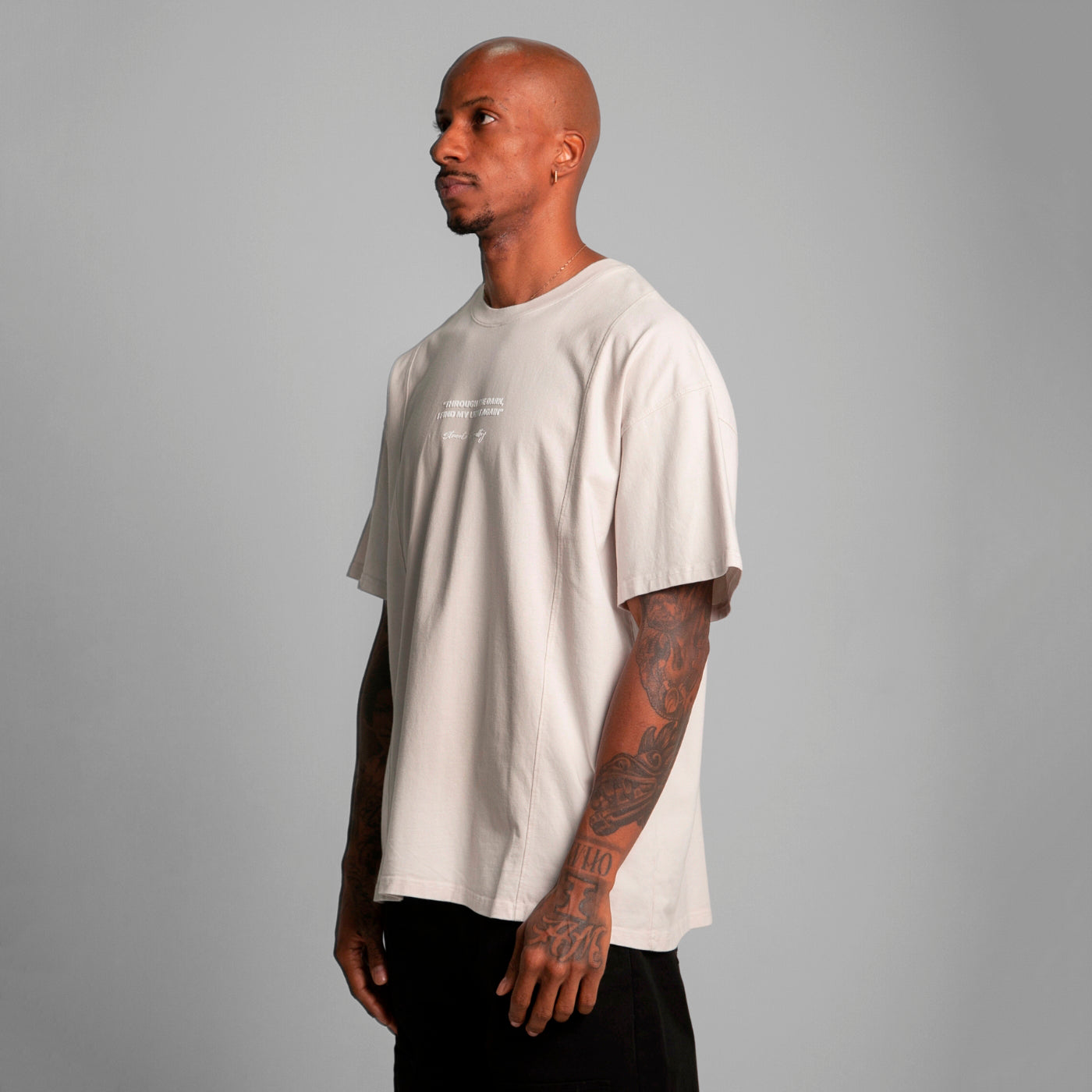 Camiseta Oversize Cortes Hombre Beige Alto Gramaje 250G