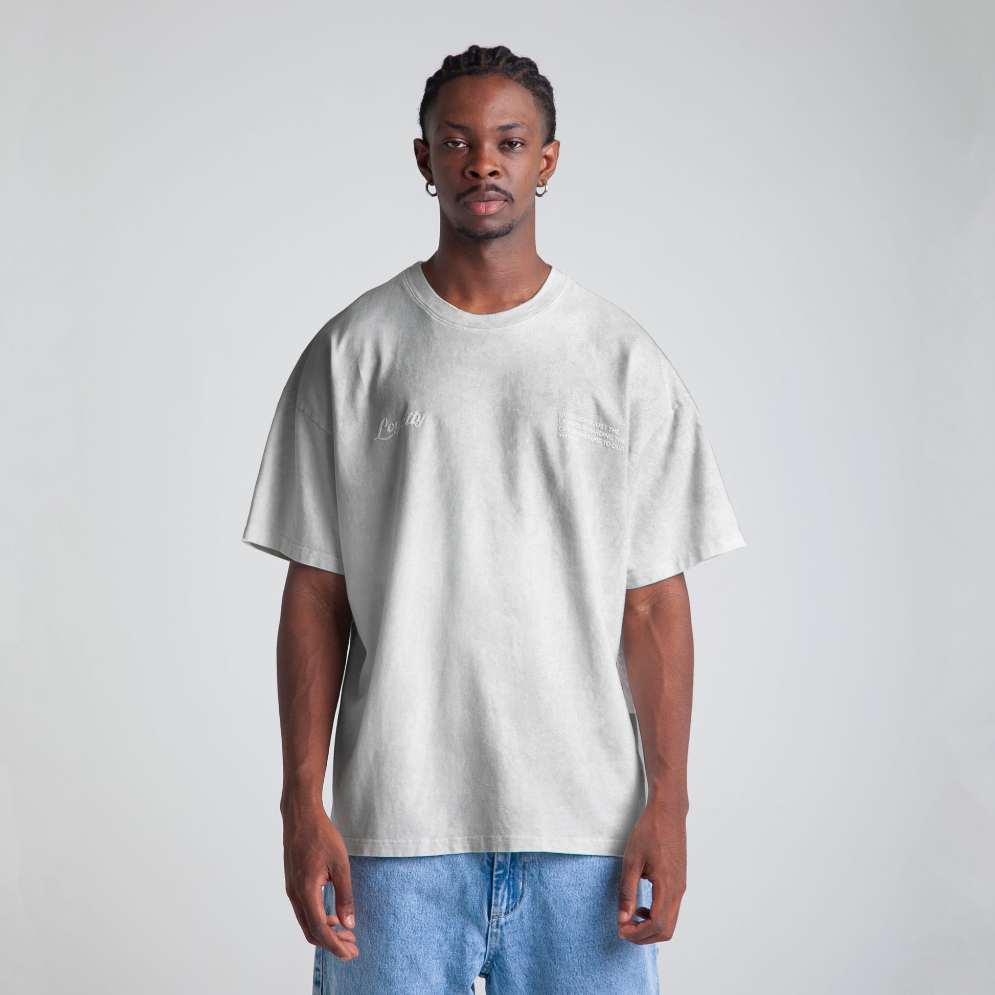 Camiseta Oversize Hombre Acid Wash Gris Alto Gramaje 250G