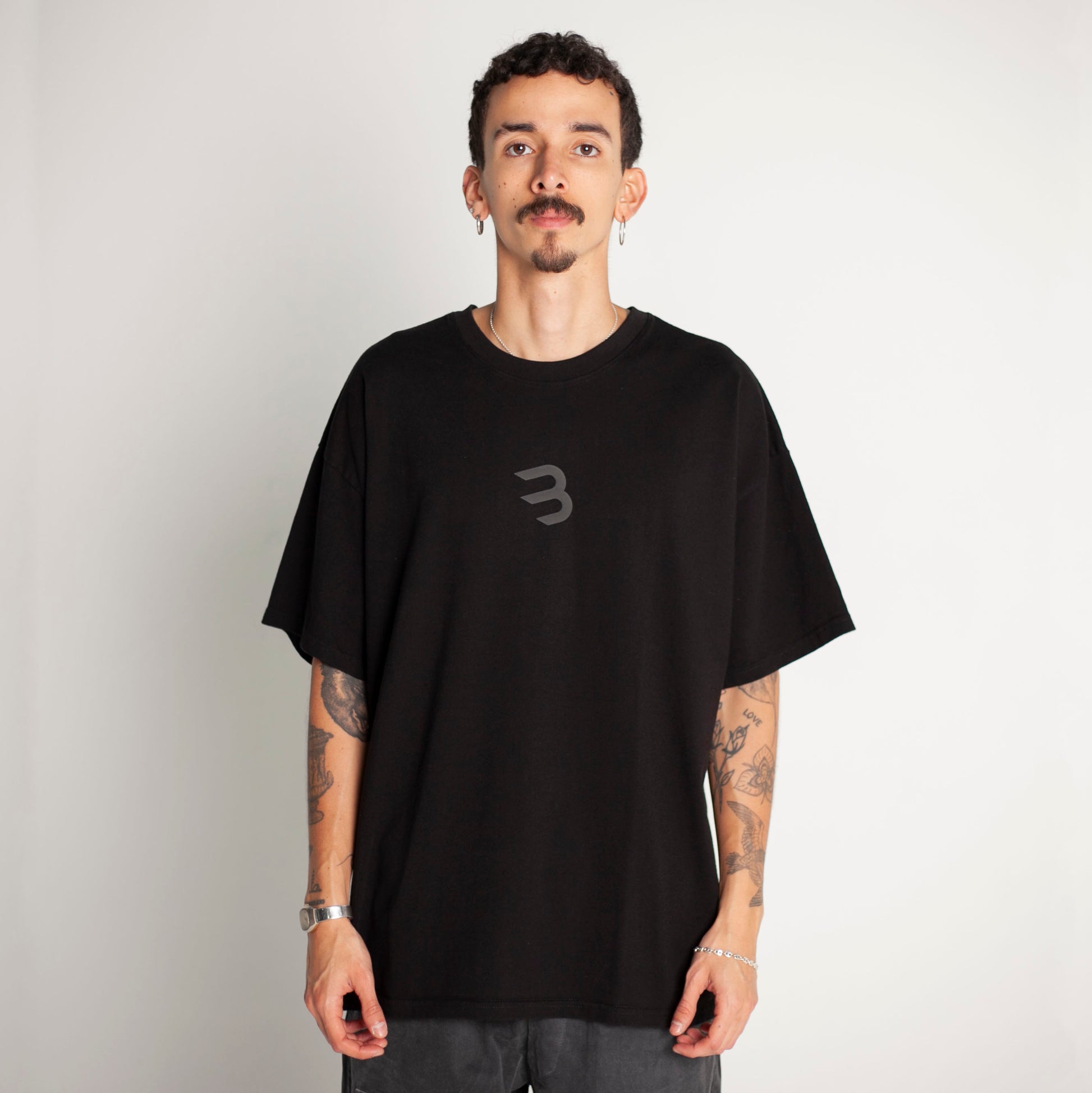 Camiseta Oversize Hombre Negra Alto Gramaje 250G